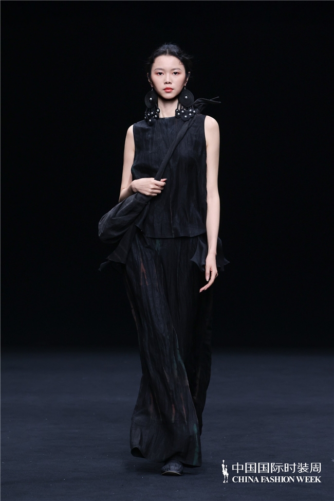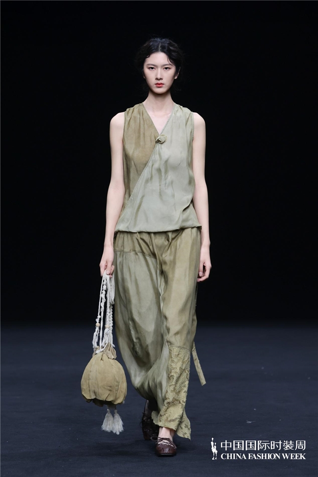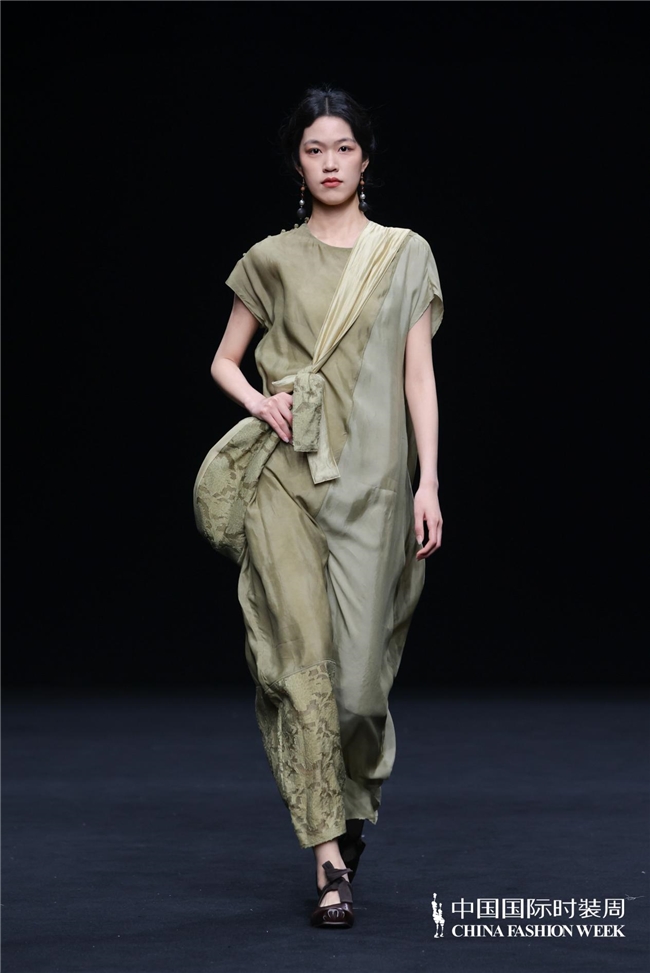 在设计呈现上,壹亍A.1以流动剪裁与松弛廓形为核心设计手法,摒弃过度修饰,消解穿着的束缚感,让服装线条随身体自然舒展。细节之处尽显匠心,手工缝制、植物染色等精工技艺的运用,进一步提升服装的质感与穿着体验,于简约中彰显高级格调。在面料选择方面,品牌秉持天然、透气、亲肤的原则,精选真丝、棉麻等天然材质,兼顾触感与体感的双重舒适,构建可持续的本真美学。秀场之上,模特以从容步态演绎系列造型,轻盈流动的衣影与现场空间氛围相得益彰,收获了现场观众的高度认可。