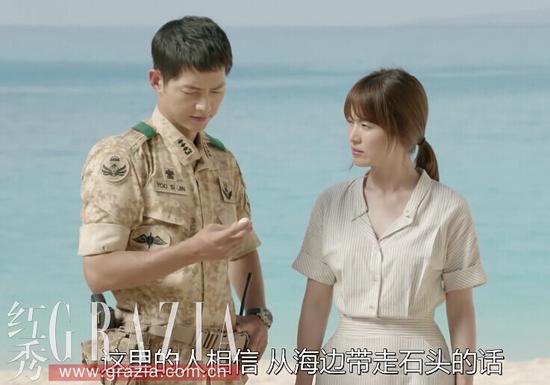 剧中的宋慧乔用清纯衬衫造型牢牢抓住欧巴的心