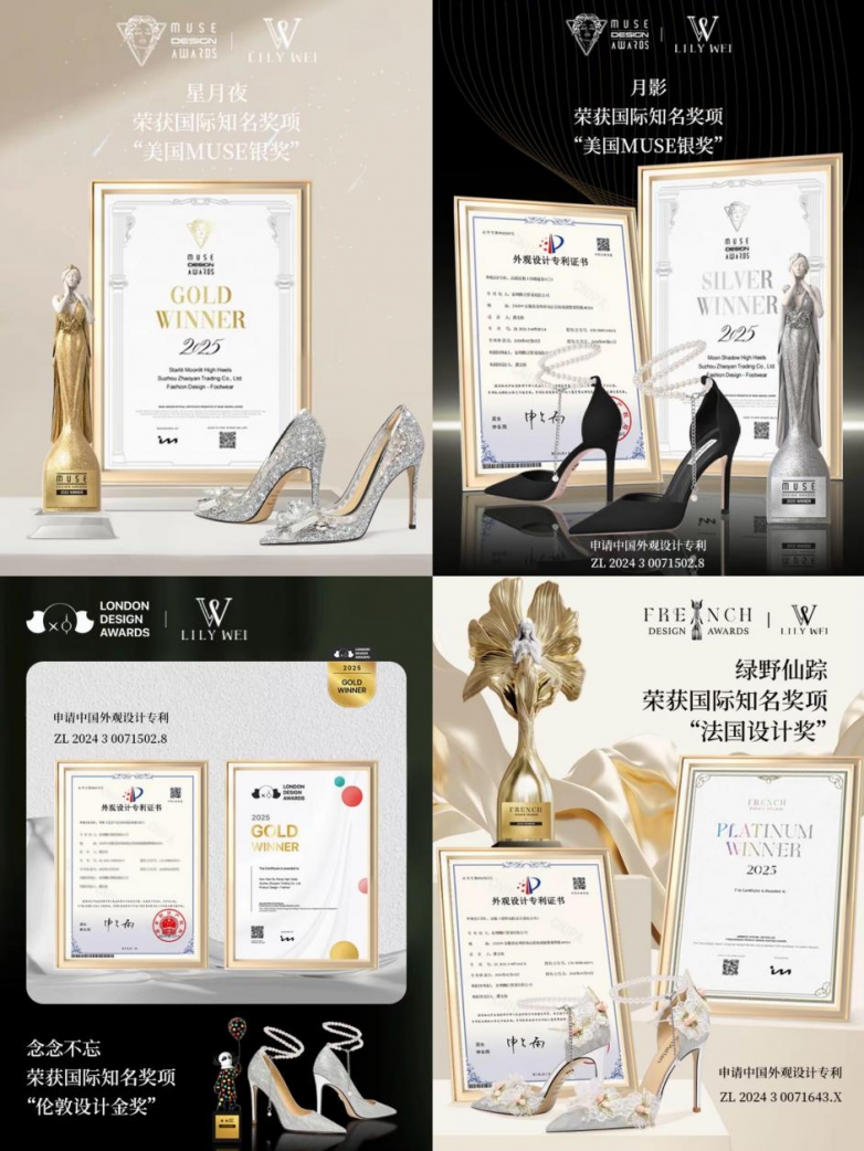 近年来,中国女鞋品牌lilywei在国际舞台上大放异彩,接连斩获伦敦设计金奖、美国MUSE银奖及法国设计奖等多项国际权威奖项。这一系列荣誉,不仅充分彰显了其卓越的设计价值与行业领先地位,更向世界证明,中国原创设计凭借深刻的用户洞察与创新实力,已获得全球设计界的高度认可!