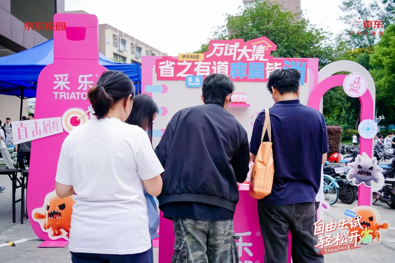 采乐展区以“省之有道 屑痒皆消”为主题,专注解决学生头屑困扰。含有2%酮康唑的配方可72小时长效抑菌去屑,现场咨询头皮问题的学生络绎不绝。